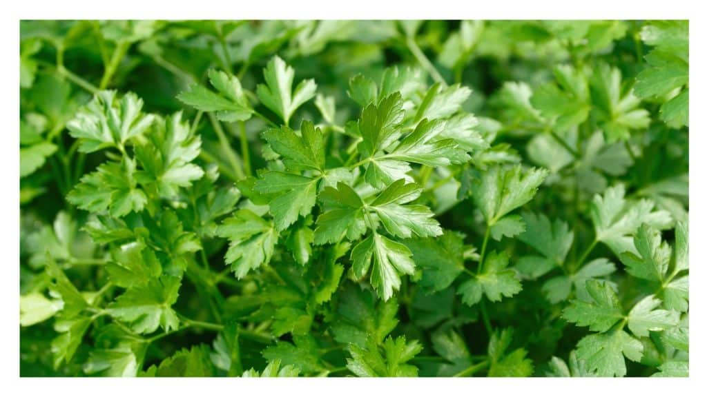 Italian parsley, also called flat-leaf parsley, has a mild grassy flavor and flat serrated leaves. It works well as a garnish or in recipes where cilantro isn’t the main flavor. You can use it as an equal swap for cilantro.