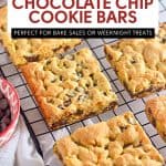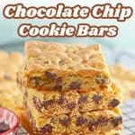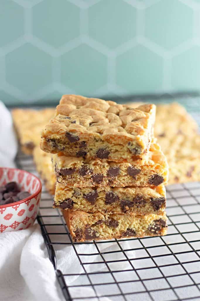 Bars are a great alternative to cookies because there’s no scooping or shaping—just press into the pan and bake. These are soft, chewy, and packed with classic chocolate chip cookie flavors. They bake up golden with a melt-in-your-mouth texture.
