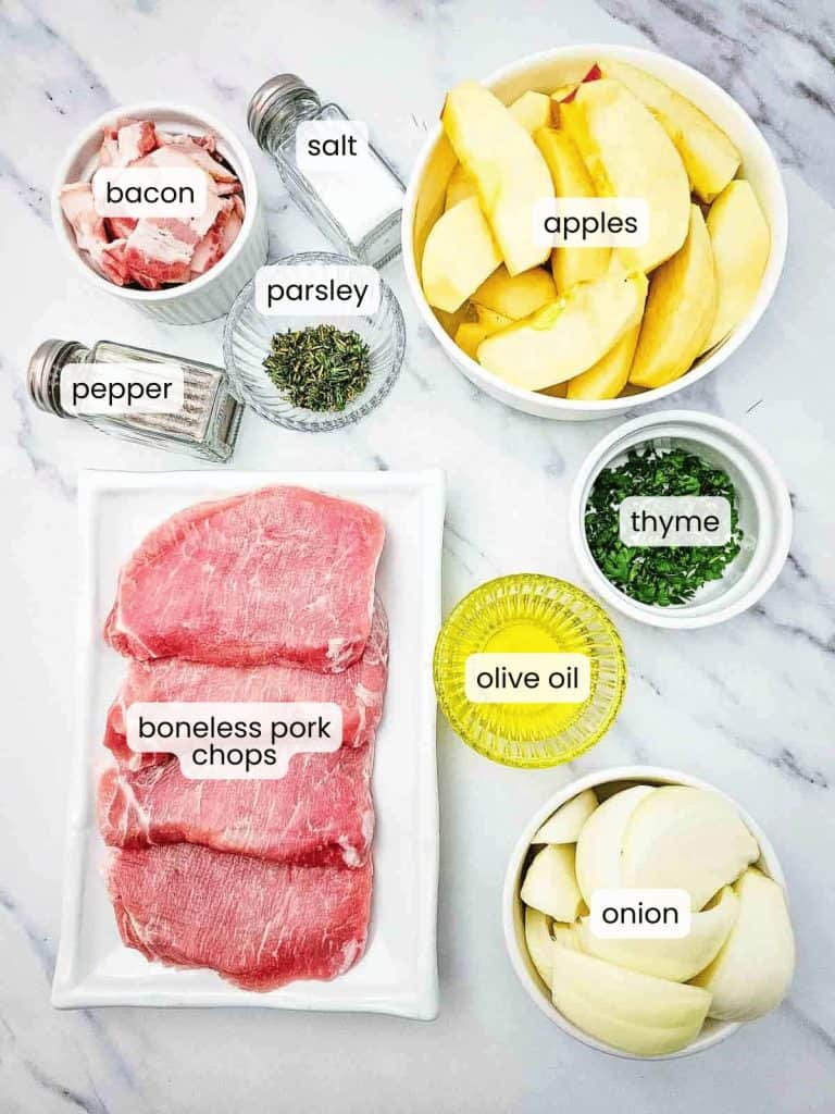 This skillet dinner brings together tender pork, soft roasted apples, and smoky bits of bacon. The sweet apples mellow in the heat, turning slightly caramelized, while the onions deepen in flavor.