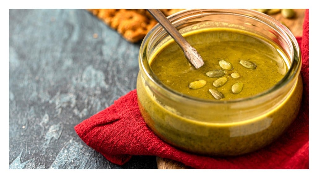 Pumpkin seed butter is a good option for those needing an allergy-friendly tahini swap. It’s made from ground pepitas and has a creamy texture that stays smooth without much oil separation. The flavor is a little more bitter with a green tint, which makes it a natural fit for dishes like pesto. Choose unsweetened, organic pumpkin seed butter for the best results.